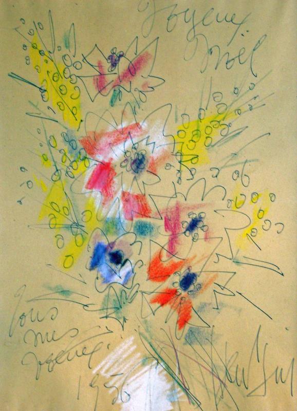 Dessin très enlevé avec une grande vivacité de trait, offert certainement pour le Noël 1956 par Gen Paul à des amis.